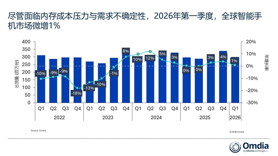 机构:Q1内存价格环比上涨90%,全球智能手机市场仅微增1%