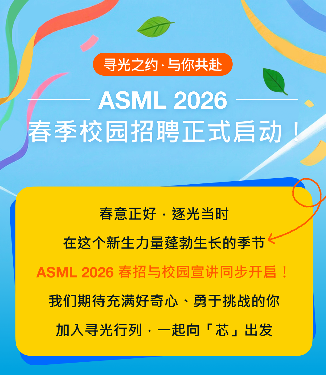 ASML 2026春招启动 | 相约春日,向“芯”出发! 作者: 爱集微 5小时前 相关舆情 AI解读 生成海报 来源:ASML阿斯麦光刻 #ASML# #2026春招# 评论 收藏 点赞 1785 责编: 爱集微 来源:ASML阿斯麦光刻 #ASML# #2026春招# 收藏 点赞 分享至: 微信扫一扫分享 THE END 相关推荐 ASML 2025年报 | 在AI浪潮中携手,共筑可持续创“芯”未来 ASML邀您共聚SEMICON CHINA 2026 SK海力士宣布斥资80亿美元采购ASML EUV光刻机 imec取得一台ASML High NA EUV 设备 助攻AI芯片 ASML称下一代EUV设备已可用于量产 AI芯片生产迎关键转折 ASML发布2025年报:聚焦技术创新与可持续发展 +关注 爱集微 微信: 邮箱:laoyaoba@gmail.com 13w文章总数 12012.5w总浏览量 最近发布 佰维Mini SSD荣获2026年中国IC设计成就奖“年度存储器” 1小时前 “新质” 双奖!佰维存储再获工控行业权威认可 2小时前 集微ICT产业政策智能体上线!开启申报新纪元 4小时前 ASML 2025年报 | 在AI浪潮中携手,共筑可持续创“芯”未来 4小时前 晶存科技亮相 Japan IT Week Spring 2026,展示嵌入式存储产品与解决方案 5小时前 获取更多内容 最新资讯 日产拟精简全球车型阵容,加大人工智能驾驶技术应用 14分钟前 长电科技2025年报解读:营收创新高,利润承压背后的战略“深蹲” 6小时前 Digital Realty计划在意大利投资20亿欧元建设数据中心 30分钟前 机构:2026年苹果将占据折叠屏手机市场19.3%份额 35分钟前 三利谱光电发布三年股东回报规划:现金分红比例不低于10% 1小时前 潍坊浪潮新一代半导体集成产业基地项目主体结构全面封顶 1小时前