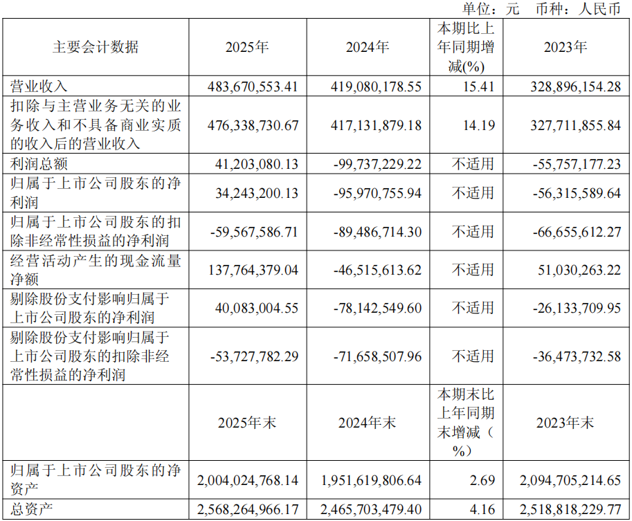 4月15日,概伦电子发布2025年年度报告。报告显示,2025年度公司实现营业收入48,367.06万元,较上年同期增长15.41%;归属于上市公司股东的净利润为3,424.32万元,上年同期为-9,597.08万元,成功实现扭亏为盈;归属于上市公司股东的扣除非经常性损益的净利润为-5,956.76万元,上年同期为-8,948.67万元,同比减亏33.44%。经营活动产生的现金流量净额为13,776.44万元,上年同期为-4,651.56万元,同比大幅改善。
